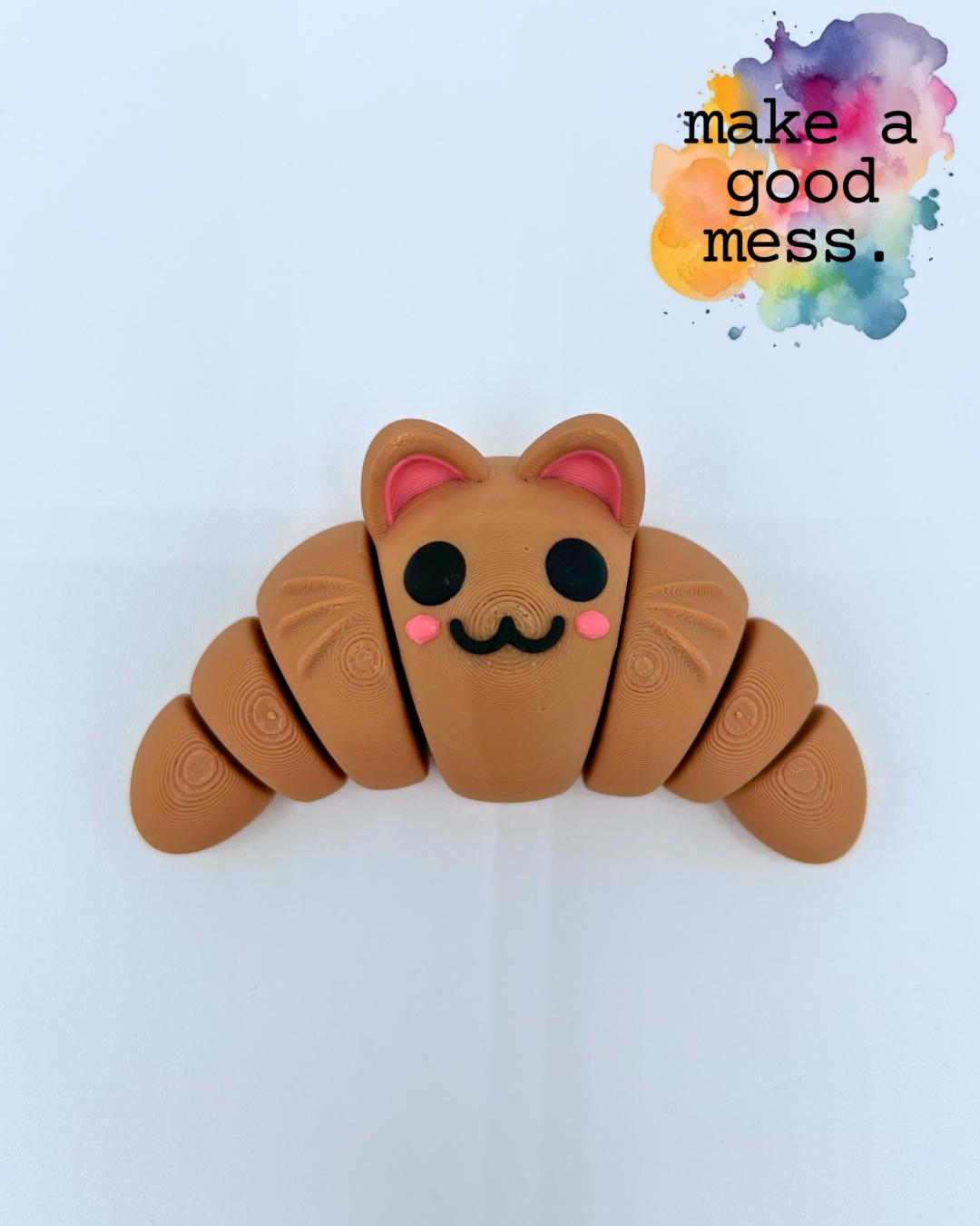 Bring some meowgical whimsy to your day with this adorable 3D printed cat-shaped croissant! Whether you’re a cat lover, a croissant enthusiast, or just someone who appreciates quirky, cute things—this little guy is here to serve flaky vibes without the crumbs.