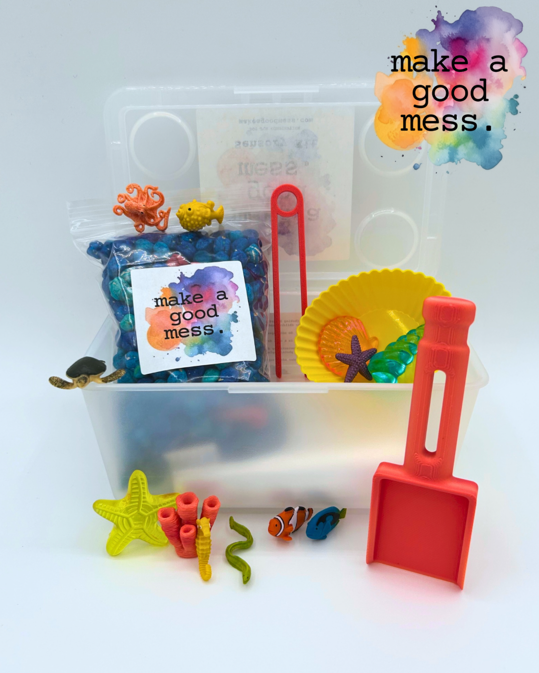 Make waves with this travel-sized ocean adventure! Our Mini Coral Reef Pour and Play Sensory Kit brings all the color and creativity of the coral reef in a smaller, easy-to-store size. Perfect for travel, quiet time, or introducing sensory play without the mess of a full bin.