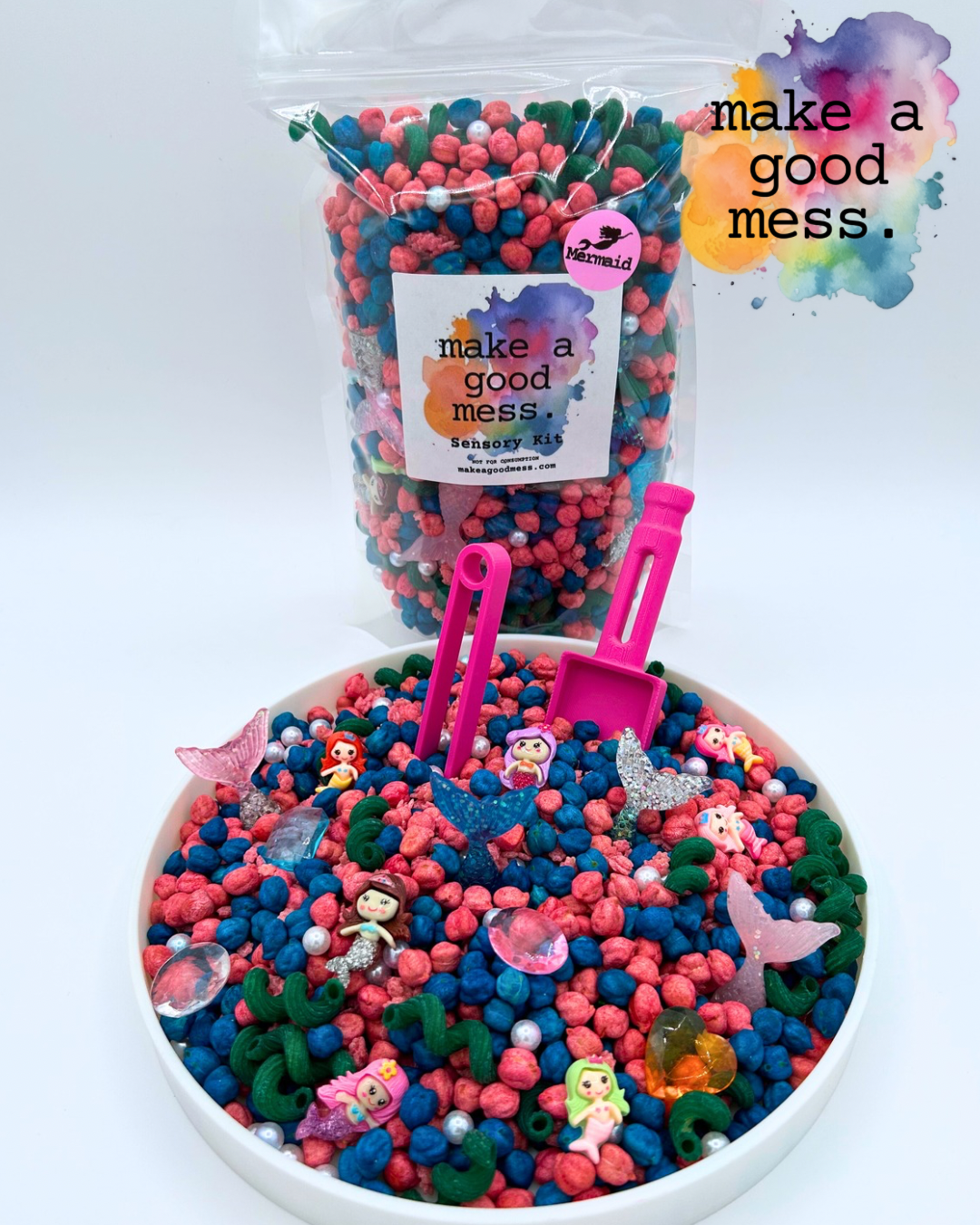 Our MERMAID Pour & Play Sensory Kit is packed fine motor fun to encourage sensory play. Intended to be added to an existing sensory table or container, our Pour and Play sensory kits are a great addition to neurodiversity affirming play.
