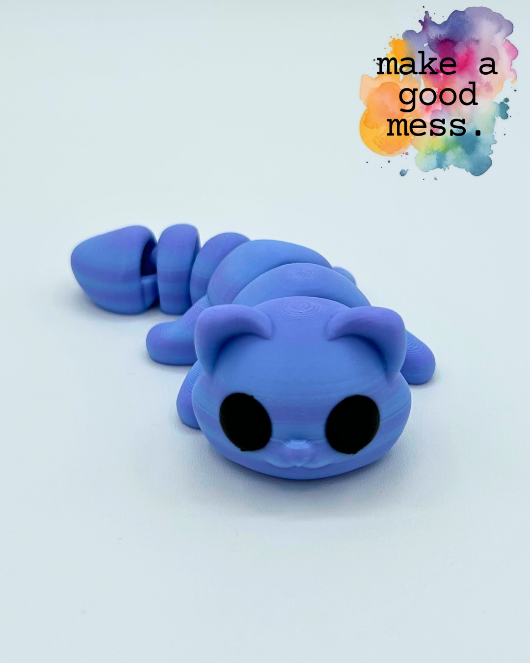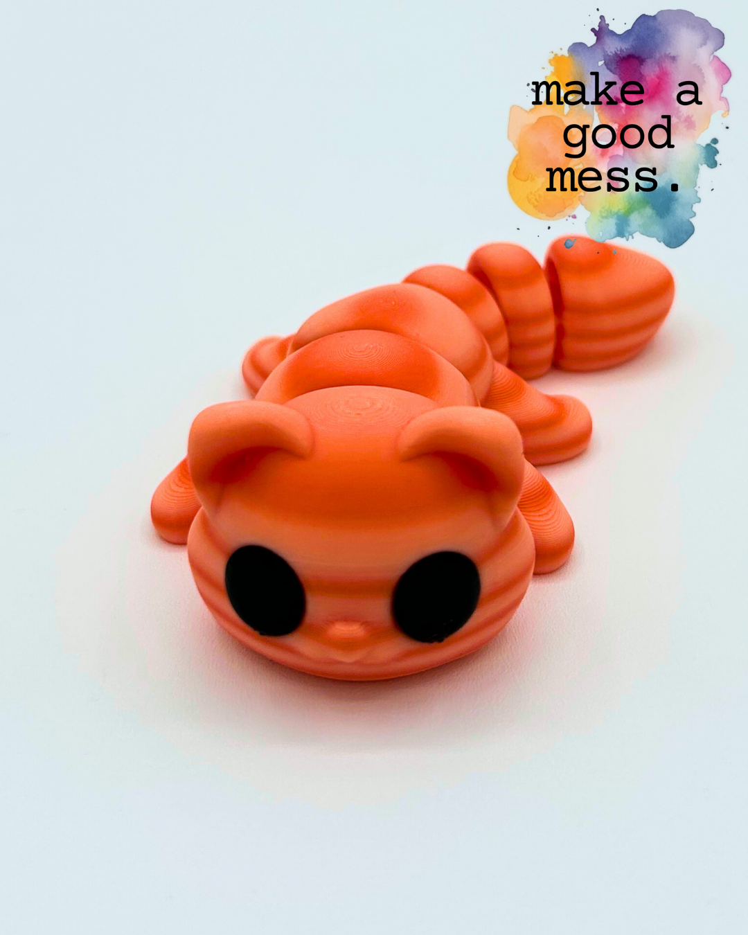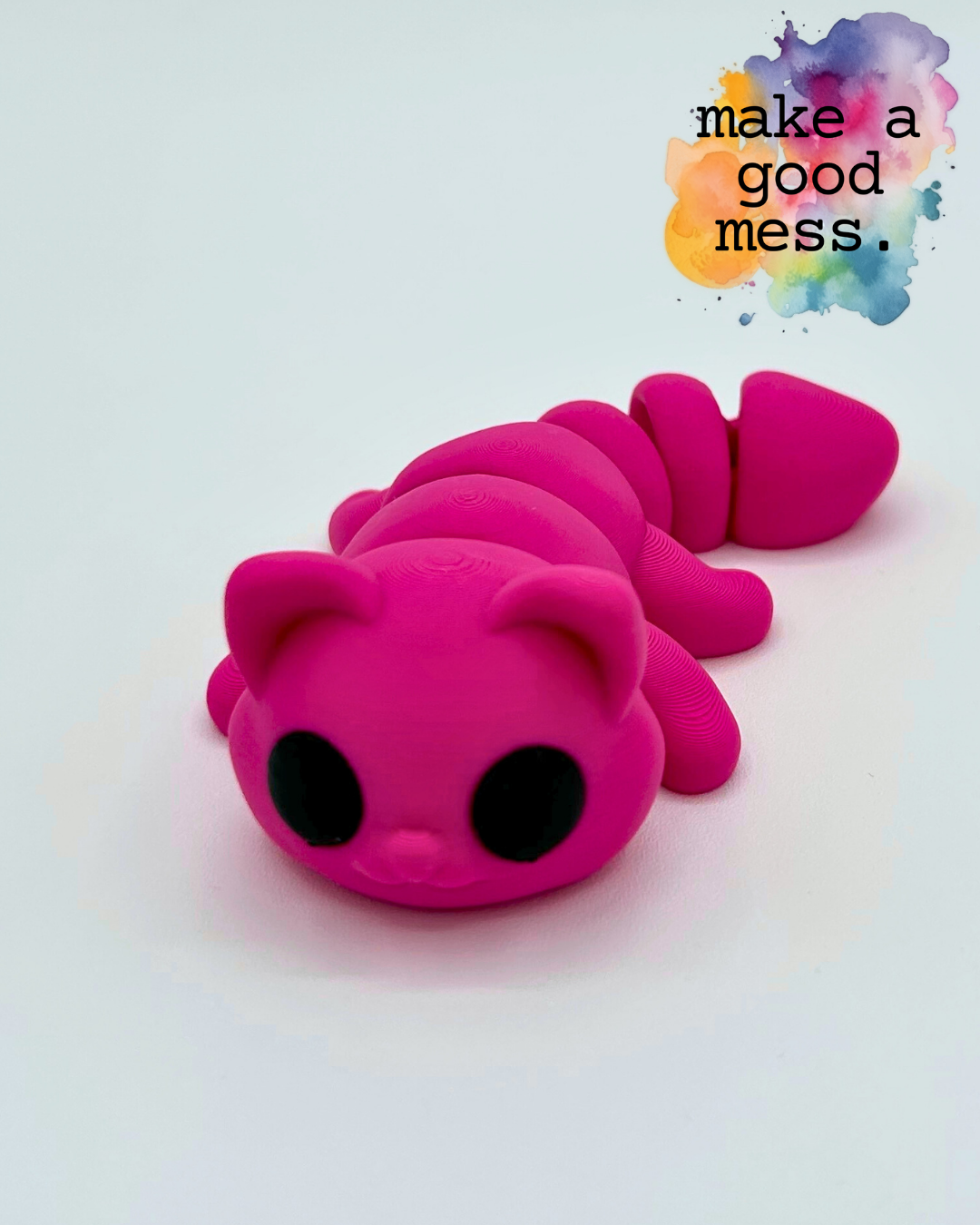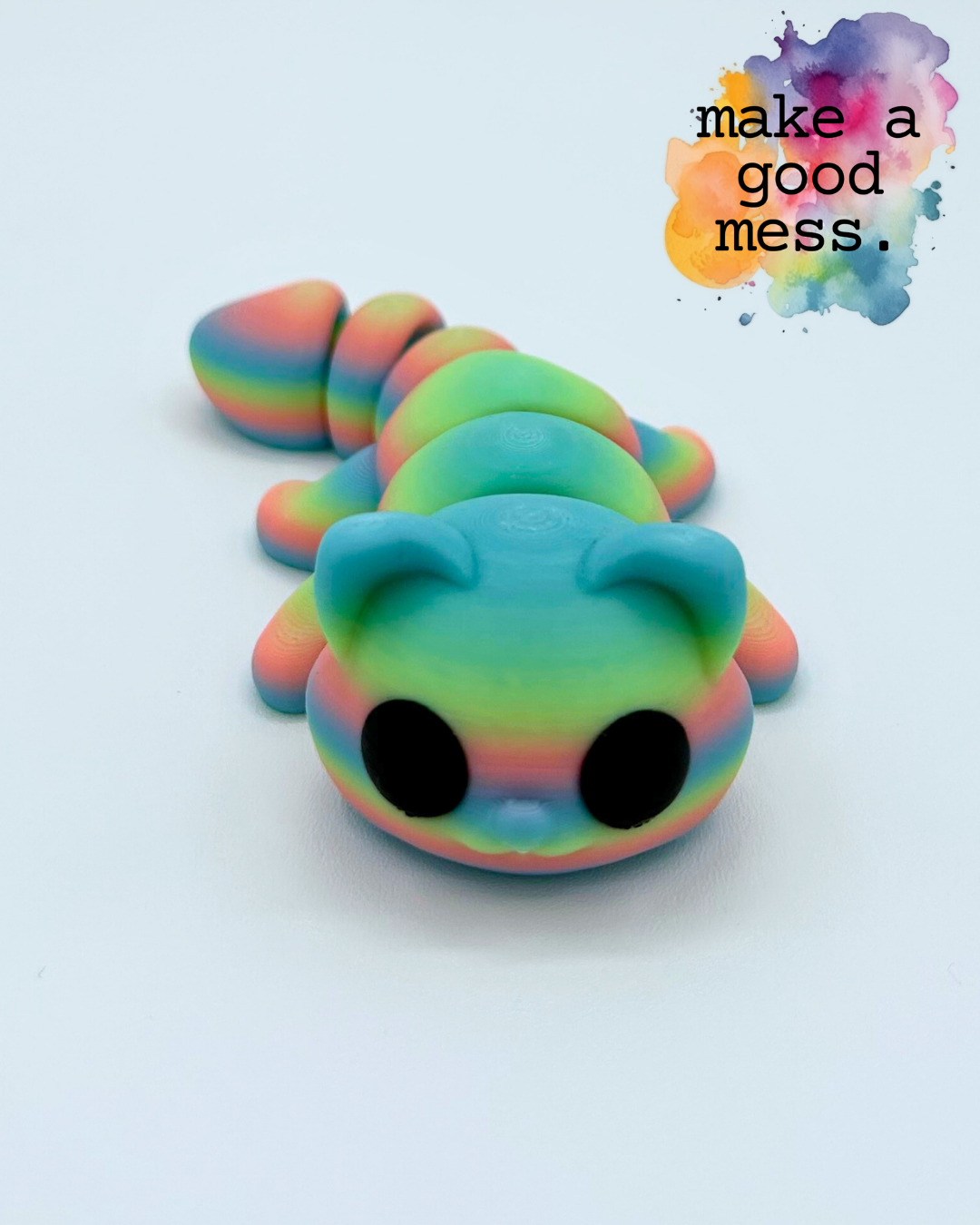 Our Rainbow 3D Printed Fidget Cat is a sensory-friendly sidekick designed to bring a little joy (and a lot of wiggles) to your day. Whether you’re a kid who loves a good tactile toy or a grown-up who needs a soothing desk buddy, this bendy cat has your back.